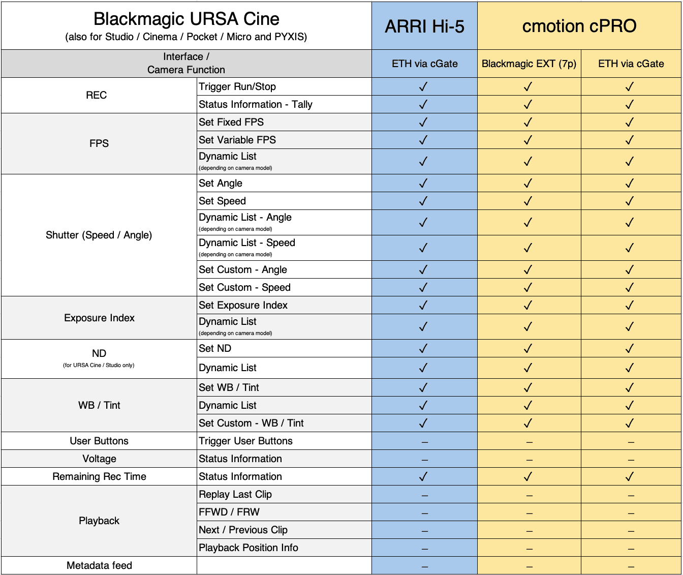 Camera control for cPRO is also possible through Blackmagic´s EXT port.